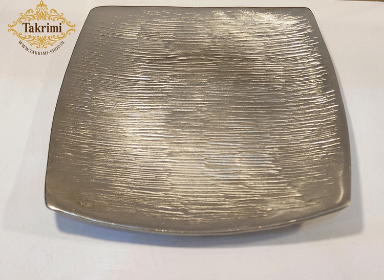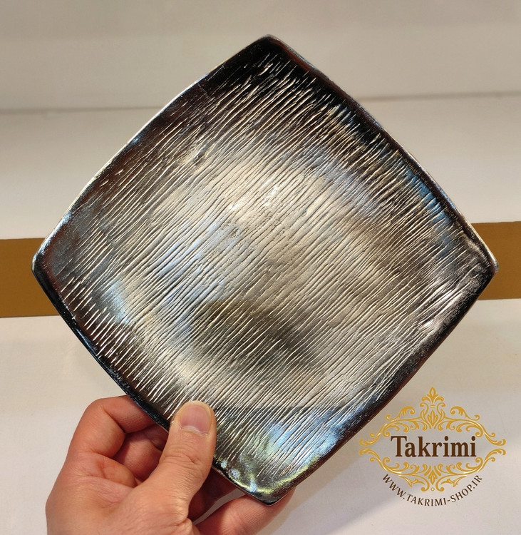 پیش دستی پیشدستی بشقاب مربع میوه خوری طرح لیلیوم شیپور خط دار ساده نقره ای آلومینیومی آلیاژی ( یک عددی ) ( تولیدی تکریمی شاپ )