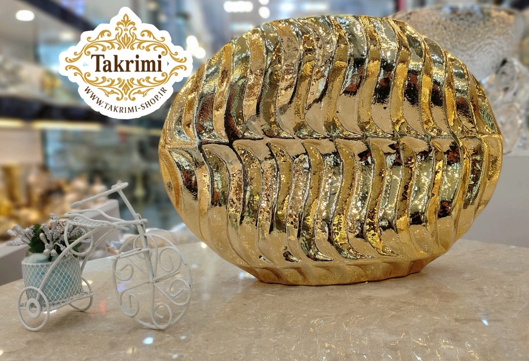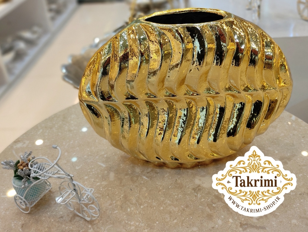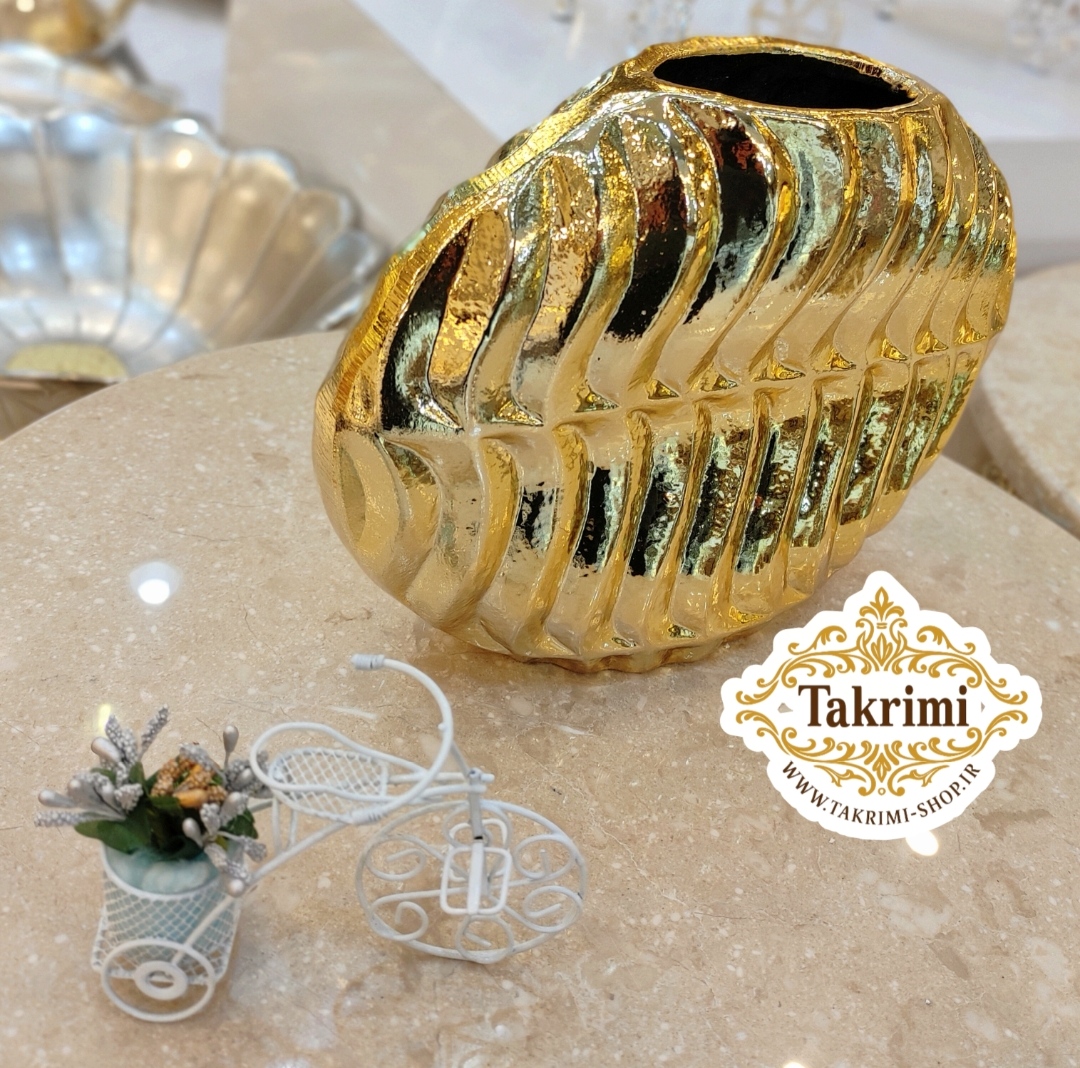 گلدان گلدون گل دان گل دون طرح موجی گرد طلایی براق آلومینیومی آلیاژی خالص ( تکریمی شاپ )