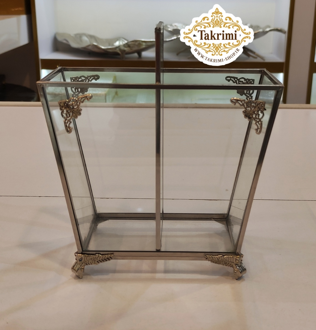 جاکاردی جا کاردی جاقاشقی جا قاشقی 2 قلو 2قلو دو قلو ایستاده نقره ای شیشه و استیل خالص